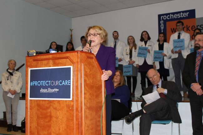 Most recently, in 2017, Slaughter and her constituents rallied around the defense of the Affordable Care Act which made provisions for those living with chronic diseases like diabetes, to receive treatment to improve care and health services, and access to prescriptions. In the same year, she also stood with a group of medical students at the “Protect Our Care Rally” to highlight the continued need to focus on the many issues concerning the citizens of upstate New York. Beyond these examples of her advocacy, there are frequent mentions of several bills that Slaughter and her staff either responded to or had to consider for debate and development from her colleagues in the House of Representatives (and, at times, other politicians in the Senate).