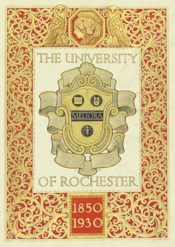 Finding another calligrapher was the only answer, and Ruth E. Gutfrucht, the daughter of a professor at what is now RIT, and future RIT professor herself, was hired. Her part of the work would continue until early 1943, when the book was bound and placed on display in a glass case at the foot of the Grand Staircase of Rush Rhees Library.