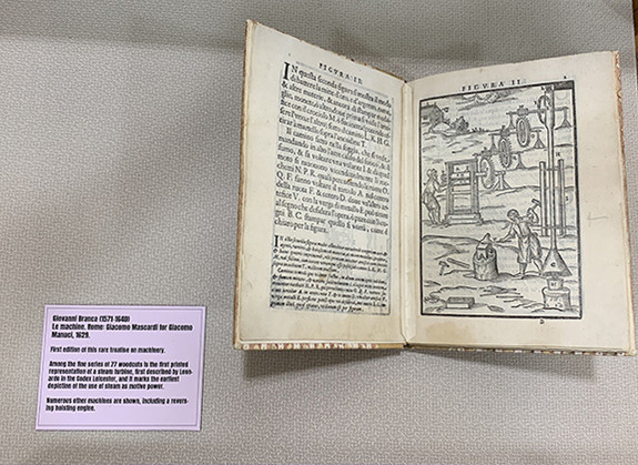 Le machine. Rome: Giacomo Mascardi for Giacomo Manuci, 1629. First edition of this rare treatise on machinery. Among the fine series of 77 woodcuts is the first printed representation of a steam turbine, first described by Leonardo in the Codex Leicester, and it marks the earliest depiction of the use of steam as motive power. Numerous other machines are shown, including a reversing hoisting engine.